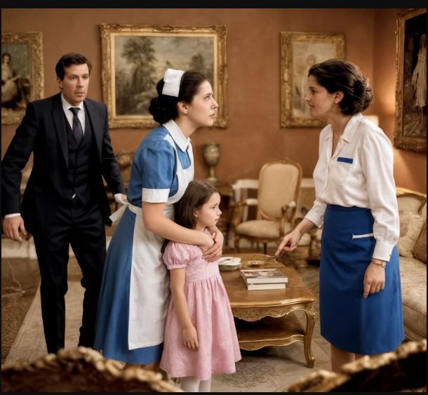 José trattenne il respiro e si avvicinò ancora. Attraverso la fessura vide la scena come un quadro che non avrebbe voluto guardare: Susana dritta, nervosa, col dito puntato. Sul letto, Julia raggomitolata con un peluche stretto al petto, le spalle che tremavano. E tra loro due… una donna in divisa blu da addetta alle pulizie, i capelli castani legati in una coda, il corpo messo di traverso come fosse uno scudo.