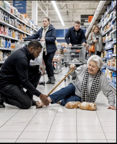 Appoggiò il telefono a terra—non per riprendere, ma per chiamare. «Pronto? Sono al Suncrest Market, Corsia 7. Abbiamo una signora a terra, possibile trauma a gamba o anca. Serve assistenza.»