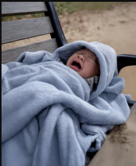 Su una panchina, avvolto in una copertina troppo sottile, c’era un neonato. Da lontano sembrava un mucchio di vestiti; poi un minuscolo pugnetto si mosse sotto il tessuto, tremando.