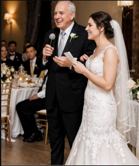 Quando mio padre biologico si alzò durante il ricevimento e dichiarò davanti a tutti di avermi regalato il matrimonio dei miei sogni, rimasi senza fiato. La realtà era ben diversa: non aveva contribuito con un solo euro. L’uomo che aveva reso possibile ogni dettaglio era seduto poco distante, in silenzio, con lo sguardo basso e il cuore ferito.