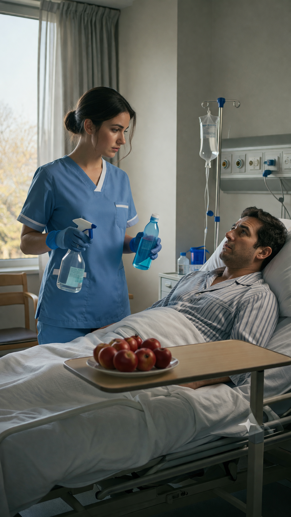 “Ciao, caro,” cantilenò entrando nella stanza di Andrey. “Ti ho portato delle mele, le tue preferite— quelle rosse. E un po’ di composta fatta in casa.”
