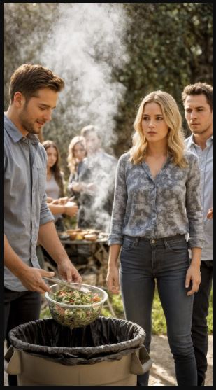 «Alla grigliata di famiglia, mio cognato ha gettato il mio piatto nella spazzatura. Io ho sorriso, ho afferrato il microfono e ho annunciato: “Prima di servirvi, permettetemi di presentarvi il nuovo proprietario di questa casa”.»